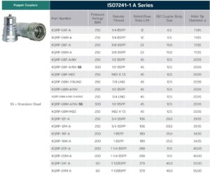 | Size | 1/4 BSPP-F, 1/4 BSPP-M, 3/8 BSPP-F, 3/8 BSPP-M, 1/2 BSPP-F, M22-F, 7/8 UNO-M, 1/2 BSPP-M, 3/4 UNO-M, M22-M, 3/4 BSPP-F, 3/4 BSPP-M, 1 BSPP-F, 1 BSPP-M, 11/4 BSPP-F, 11/4 BSPP-M, 11/2 BSPP-F, 11/2 BSPP-M |